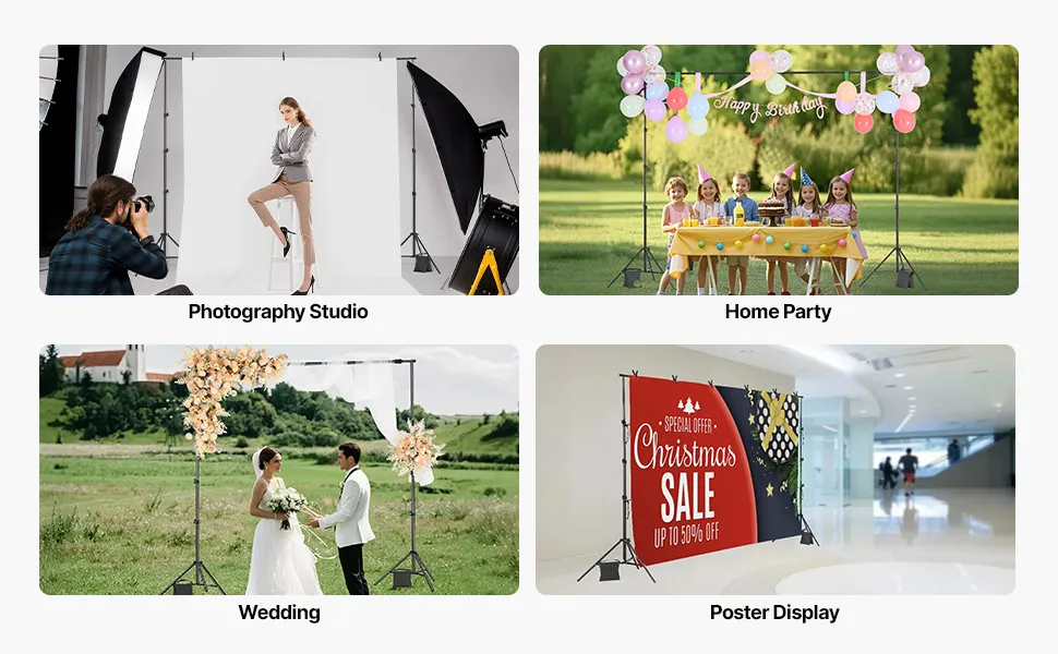 Multiuso - Il nostro supporto per fondale è ideale per fotografie in studio, matrimoni, feste, presentazioni di prodotti e altro ancora, soddisfacendo tutte le tue esigenze di background