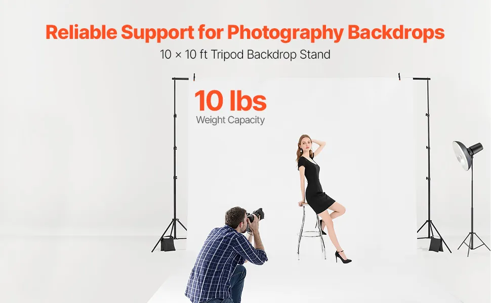 Questo supporto per fondale è dotato di 2 supporti per treppiede per stabilità e durata e ha una capacità di carico di 4,5 kg. Le sue dimensioni regolabili si adattano a sfondi di grandi dimensioni ed è ideale per studi, uso domestico, hotel e palcoscenici.