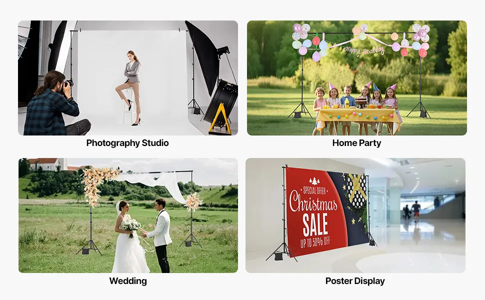 Multiuso - Il nostro supporto per fondale è ideale per fotografie in studio, matrimoni, feste, presentazioni di prodotti e altro ancora, soddisfacendo tutte le tue esigenze di background