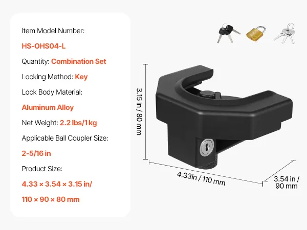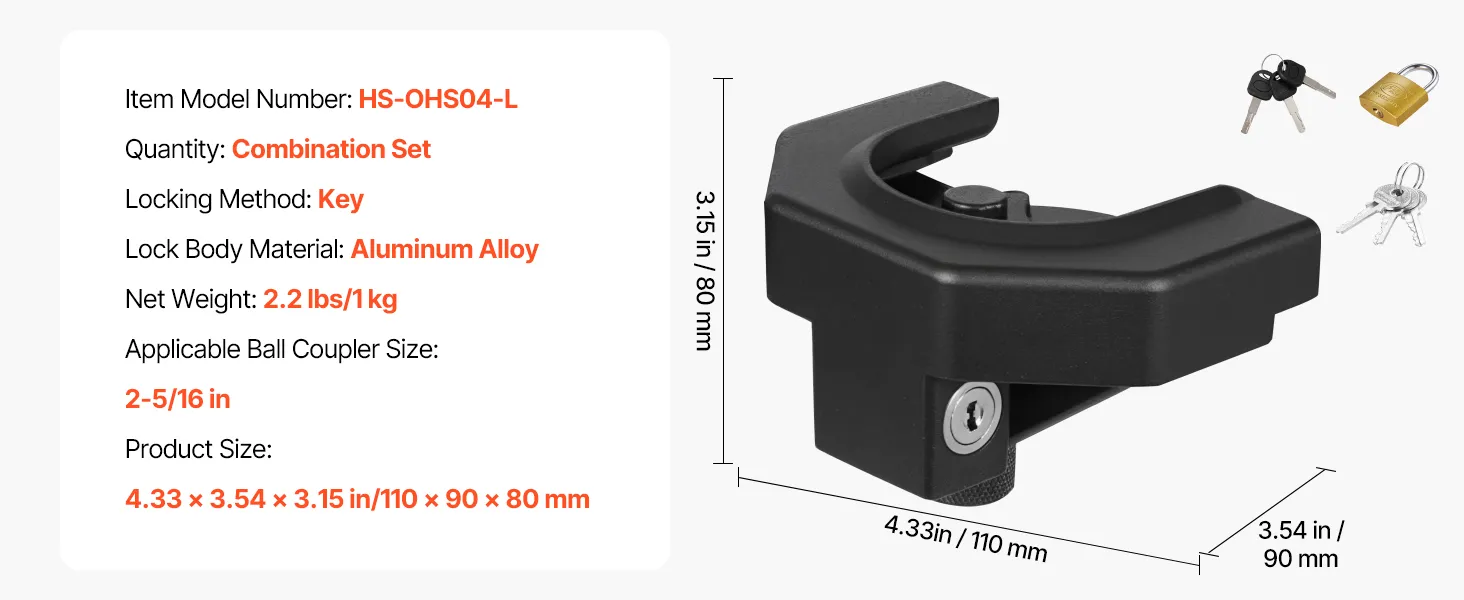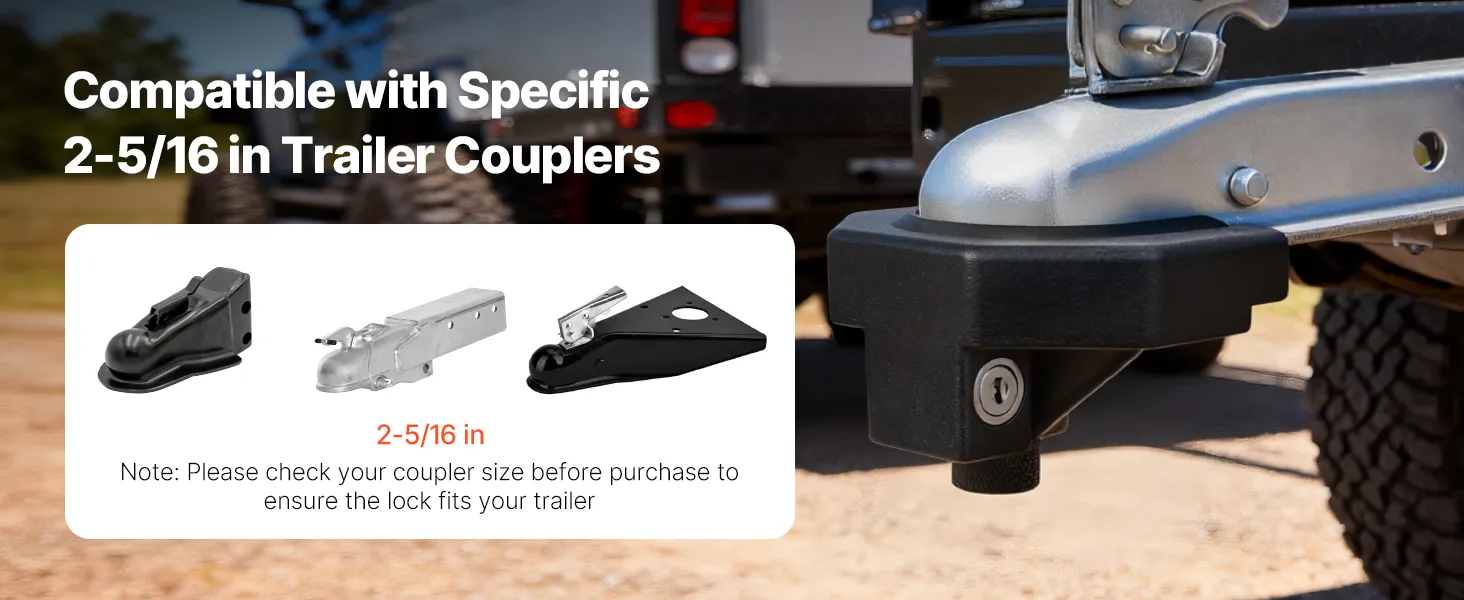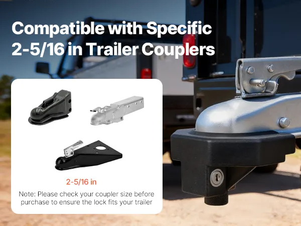 Il nostro blocco per gancio di traino è compatibile con ganci di traino da 2-5/16", offrendo un'ampia adattabilità. Si prega di verificare le dimensioni del gancio prima dell'acquisto per assicurarsi che il blocco sia adatto al rimorchio.