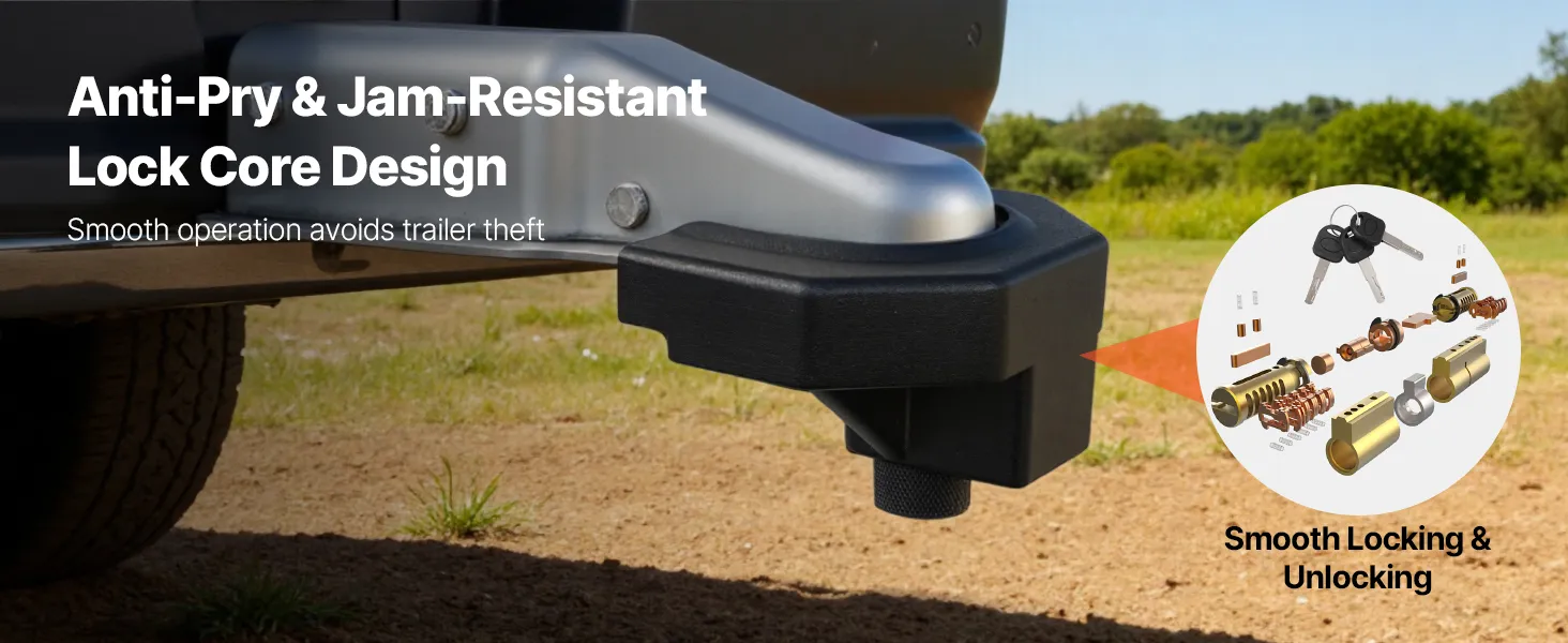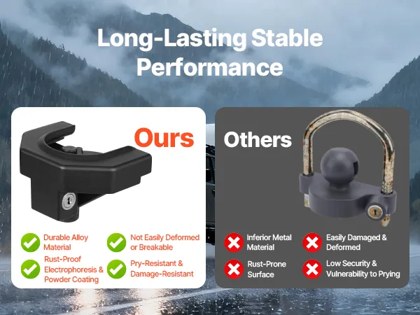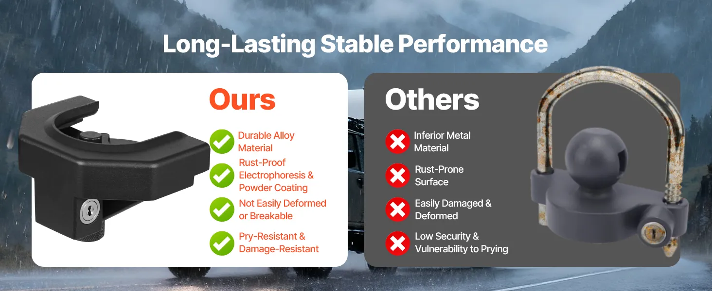 Dotato di un meccanismo di bloccaggio anti-effrazione e anti-inceppamento, il nostro gancio a sfera per lucchetti per rimorchi riduce il rischio di effrazione, garantendo al contempo un bloccaggio e uno sbloccaggio fluidi. Il meccanismo di bloccaggio, lavorato con precisione.