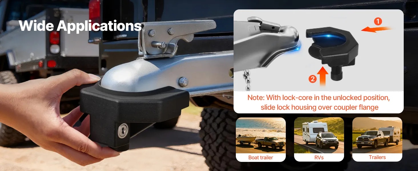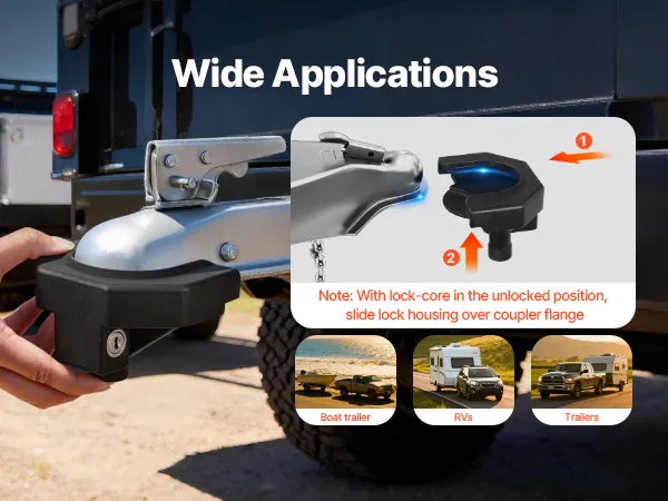 Che si tratti di trainare un rimorchio, di campeggiare con un camper o di trasportare una barca, questo lucchetto per rimorchi offre una protezione affidabile. È adatto a rimorchi, camper, veicoli fuoristrada e barche, offrendoti tranquillità in ogni situazione.