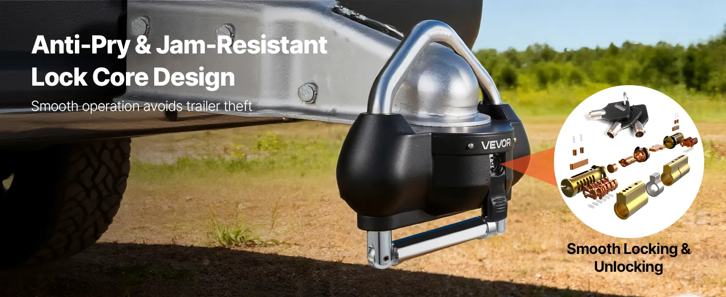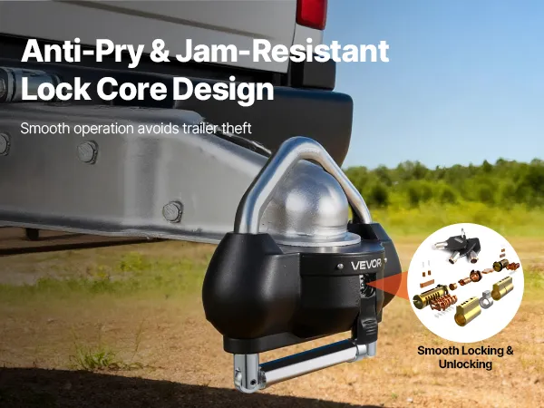 VEVOR Lucchetto per Rimorchio Antifurto, Blocco a Sfera per Rimorchio ad Alta Resistenza con 3 Chiavi, Resistente alle Intrusioni, Design Regolabile in Altezza per Camper, Barche, Rimorchi, Nero