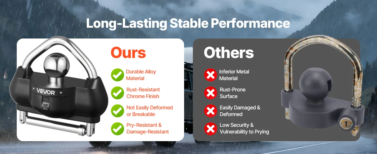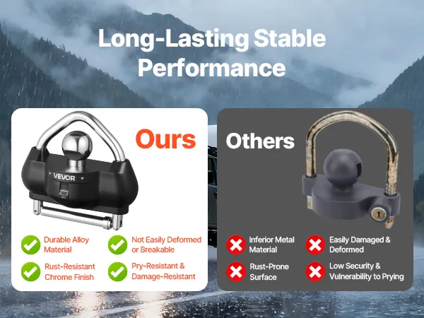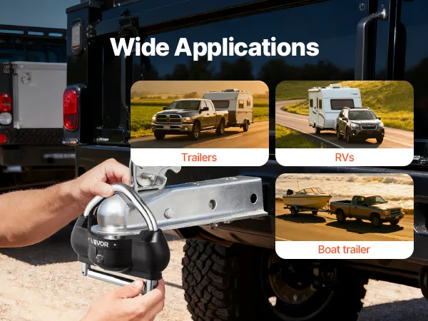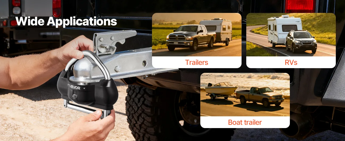 Che si tratti di trainare un rimorchio, di campeggiare con un camper o di trasportare una barca, questo lucchetto per rimorchi offre una protezione affidabile. È adatto a rimorchi, camper, veicoli fuoristrada e barche, offrendoti tranquillità in ogni situazione.