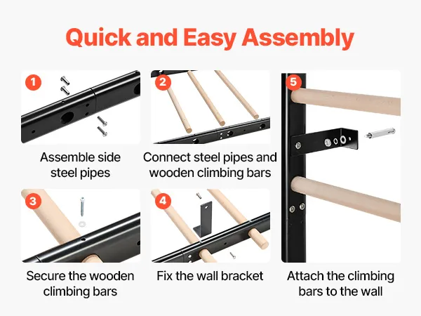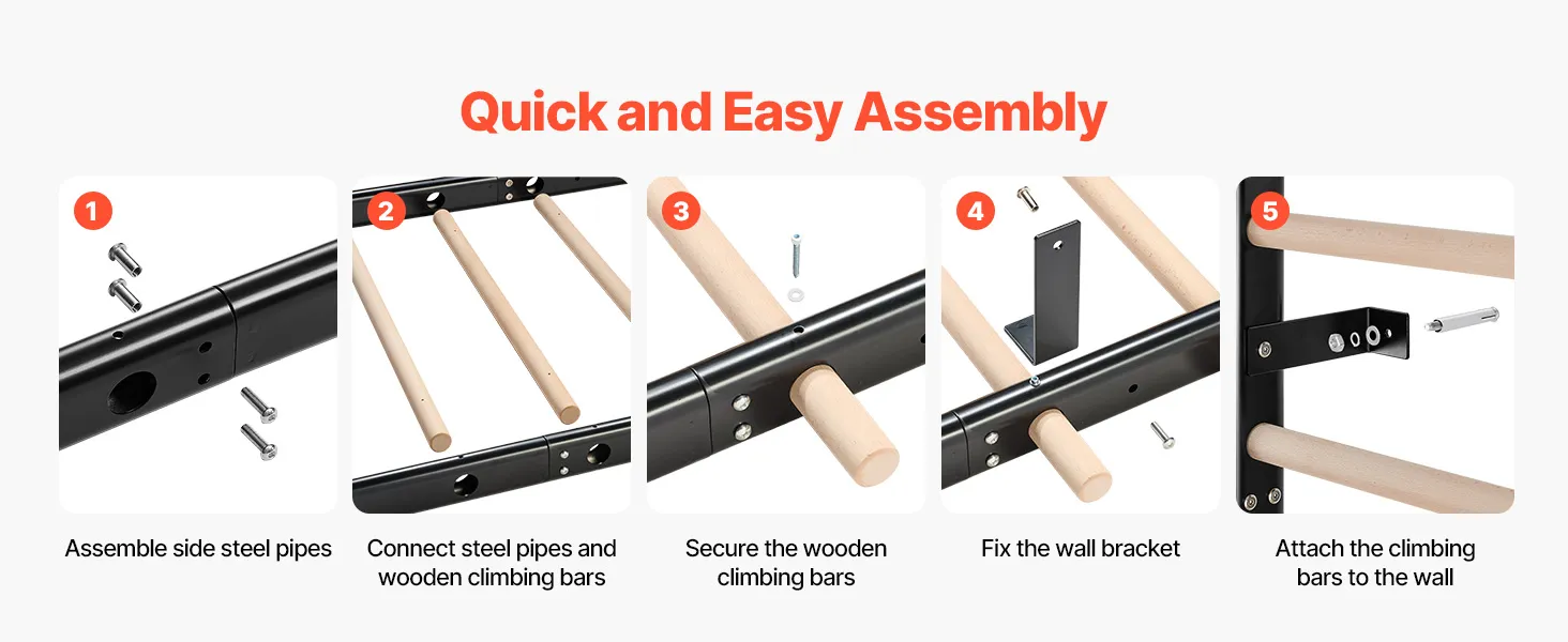 Grazie al design modulare e al manuale utente dettagliato, montare questo set di scale svedesi in legno è un gioco da ragazzi. Non c'è bisogno dell'aiuto di un esperto: basta seguire le istruzioni e creerete rapidamente uno spazio di allenamento divertente.