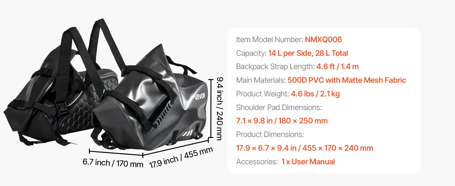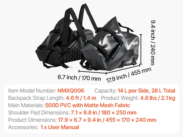 Grande capacità di stoccaggio: con un'ampia apertura e un interno profondo, la borsa laterale per moto offre un totale di 28 litri di spazio di archiviazione. Una borsa può contenere vestiti estivi, impermeabile, due bottiglie d'acqua