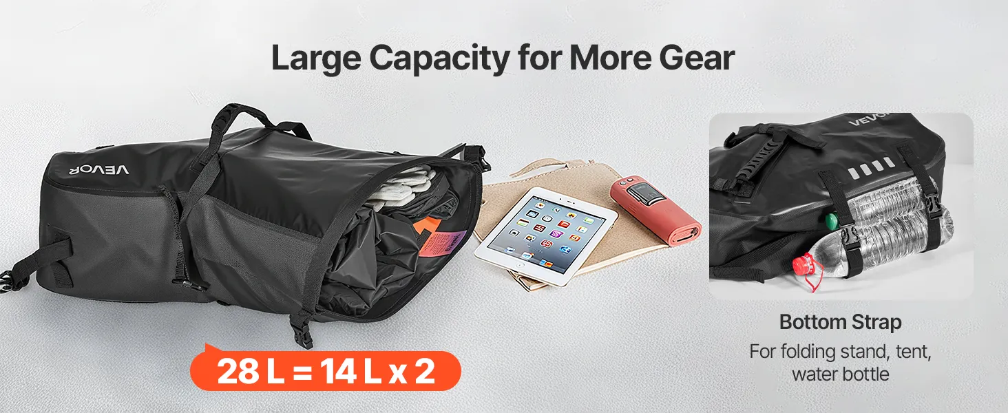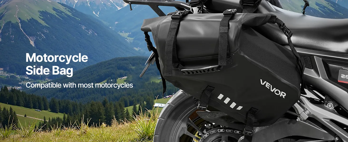 VEVOR Borsa da Sella Laterale per Moto, 28 L Borsa a Tracolla con Cinghia Inferiore, Compatibile con Maggior Parte delle Motociclette, Portabagagli per Moto Sportive all'Aperto, Nero
