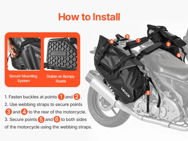 Questa borsa da sella per moto è facile e veloce da installare. È dotata di fibbie robuste e regolabili per una vestibilità aderente che non si allenta durante i viaggi.