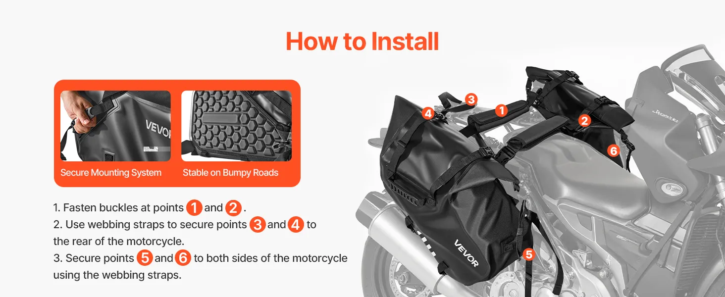 Facile da installare e rimuovere: la nostra borsa da sella per moto è dotata di due cinghie laterali, una spallina e una cinghia di fissaggio per un montaggio rapido. Rilascia le cinghie per trasformarla in una borsa a tracolla per un facile trasporto