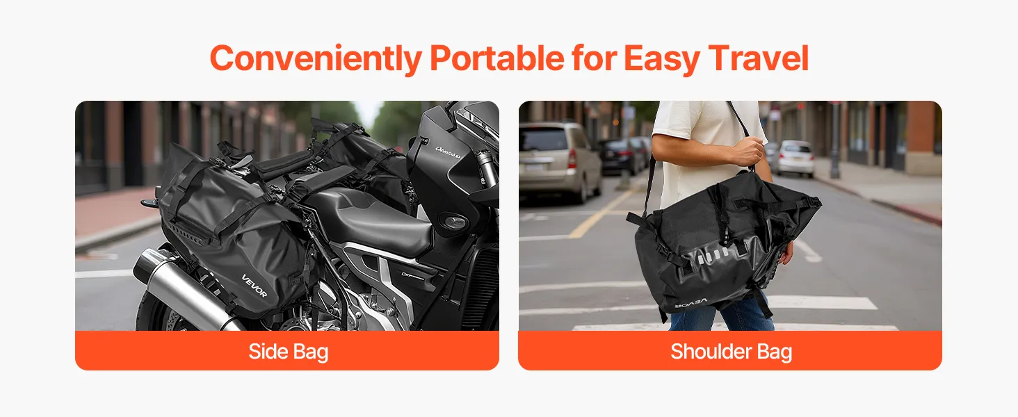 La borsa laterale per moto di grande capacità può contenere facilmente oggetti di tutte le dimensioni, dagli indumenti agli attrezzi, dal cibo agli oggetti essenziali di uso quotidiano.