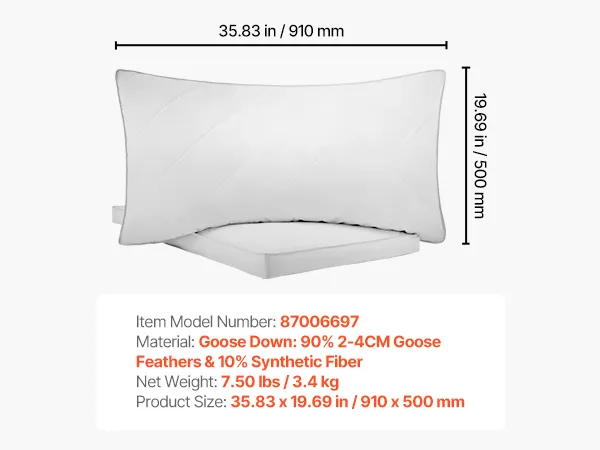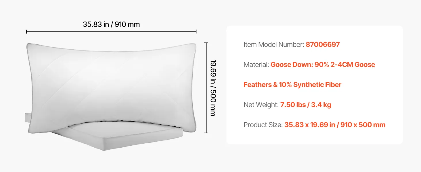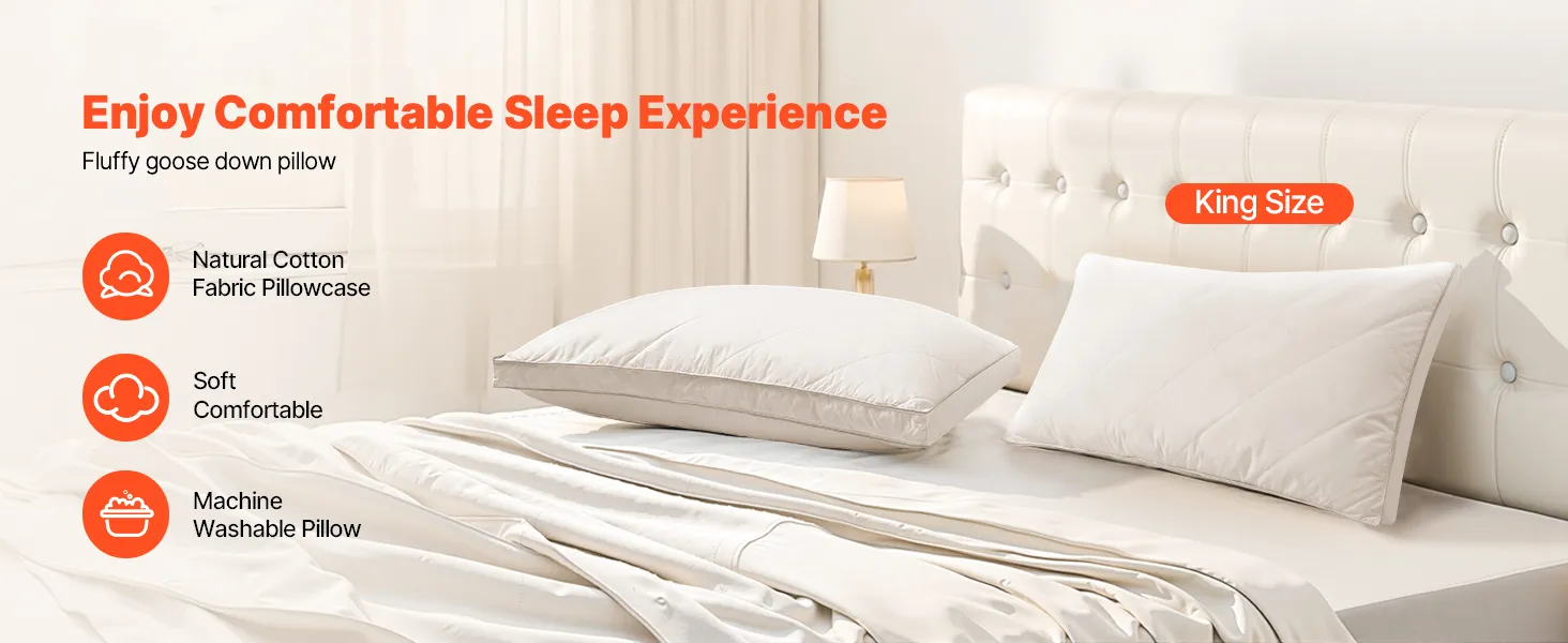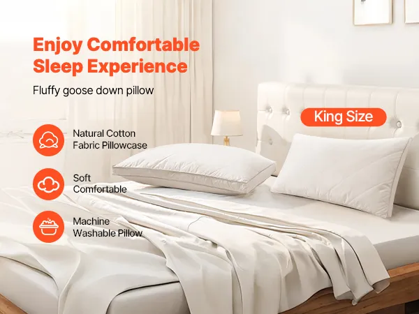 Morbido e confortevole: questo cuscino per letto king size è imbottito con il 90% di piumino d'oca, offrendo una sensazione di morbidezza, leggerezza e sofficità per un sonno rilassante come su una nuvola