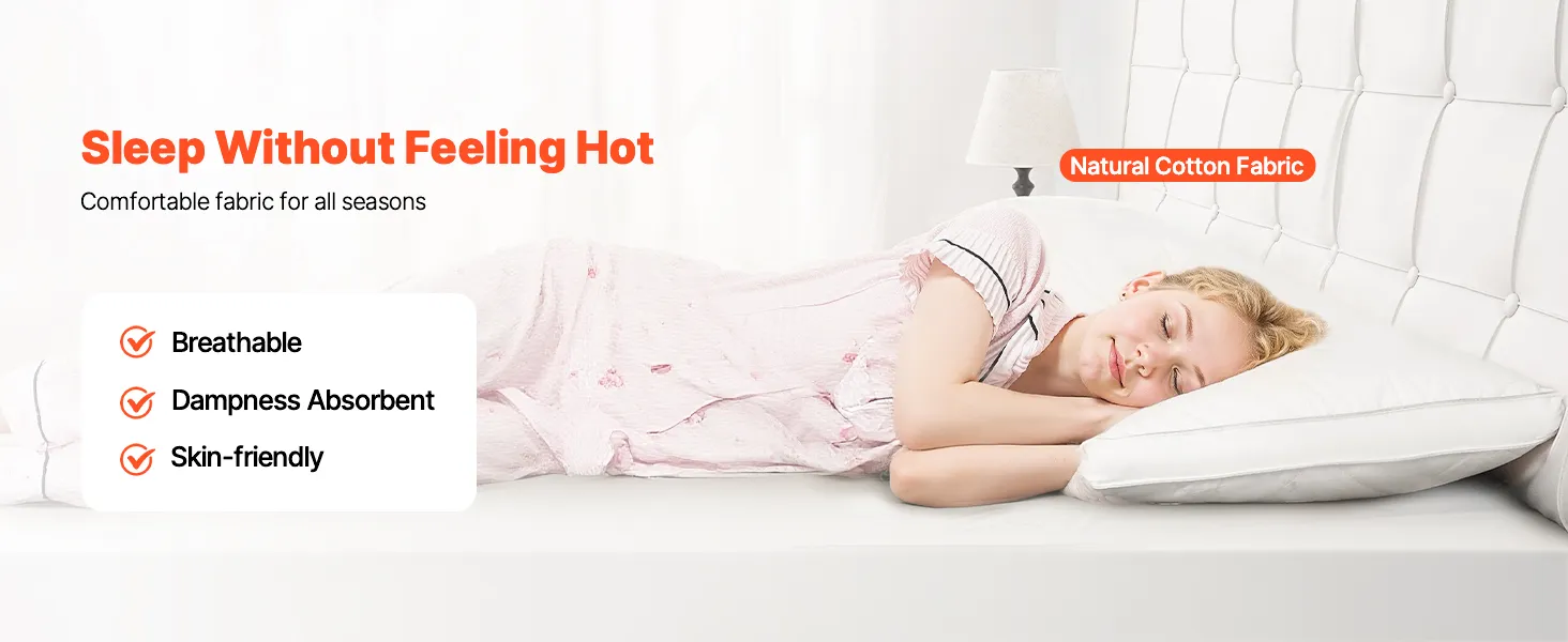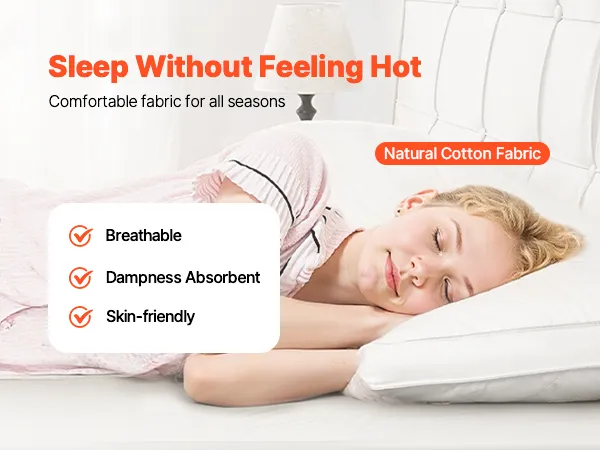 Il tessuto di cotone naturale del nostro morbido cuscino è delicato sulla pelle, morbido e traspirante, garantendo comfort tutto l'anno e una sensazione di asciutto e freschezza.