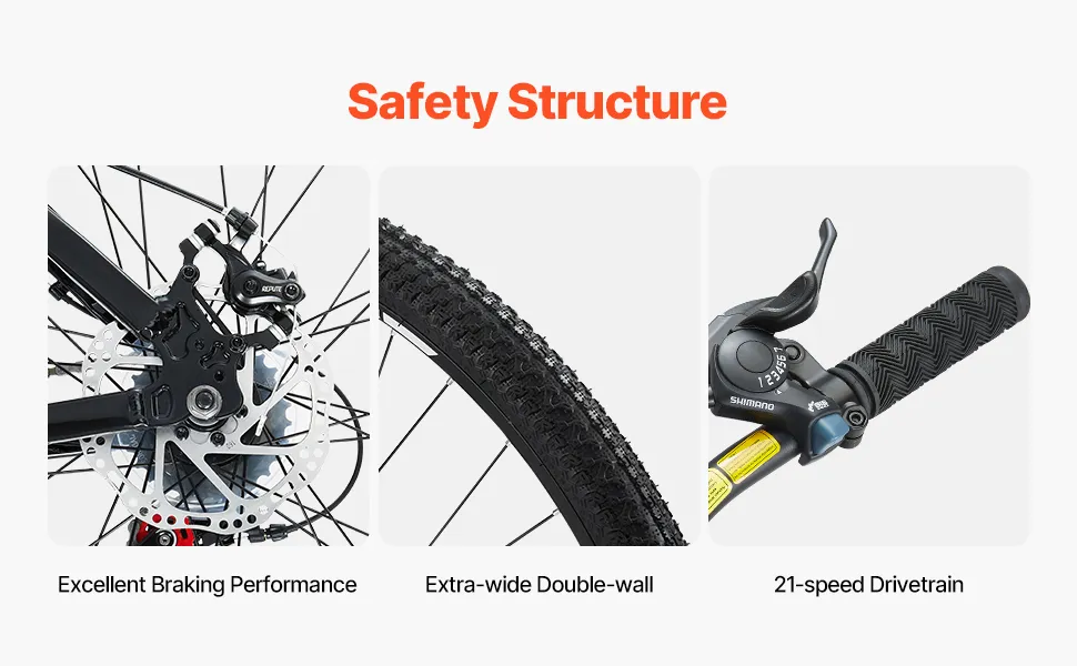 Eccellente sistema frenante: questa mountain bike è dotata di freni a disco anteriori e posteriori per una risposta rapida, fornendo controllo preciso e sicurezza anche in discesa e in condizioni di bagnato