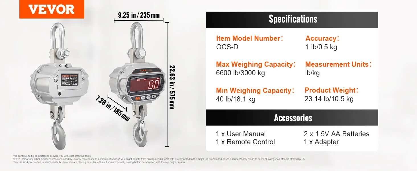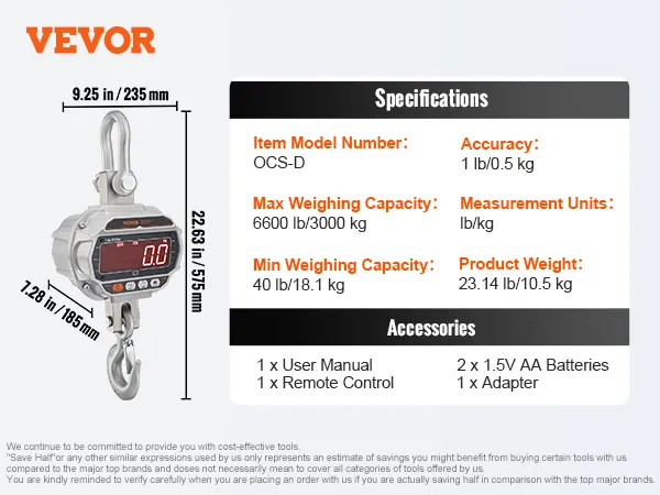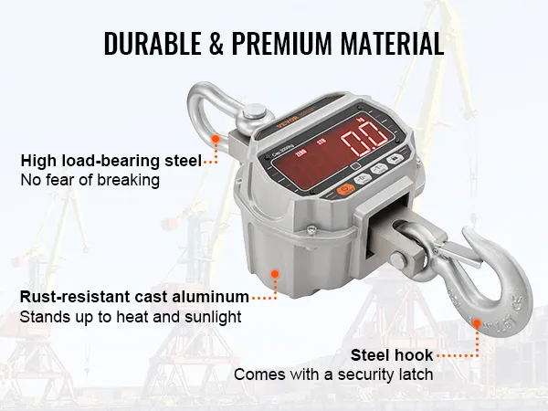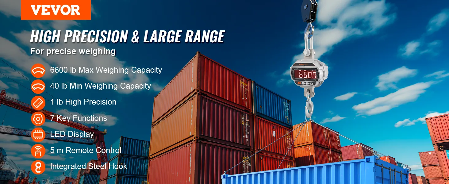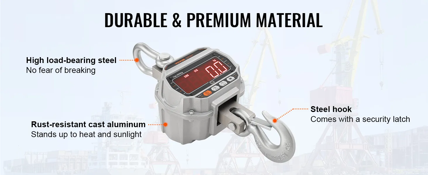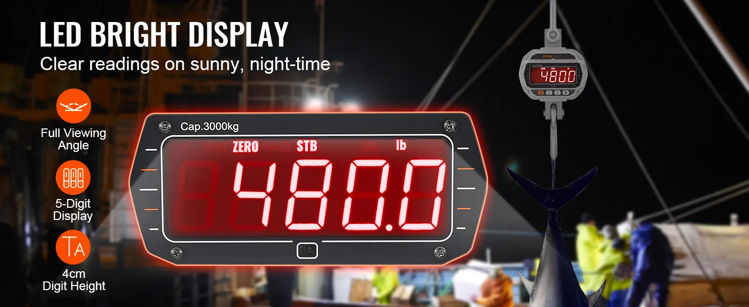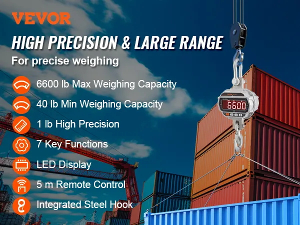 Precisione Affidabile: la bilancia da gru di peso digitale è uno strumento potente per il lavoro di carico pesante. Con una gamma di capacità carico da 18,1 kg a 3000 kg, otterrete una lettura molto accurata, con un margine di errore di appena 0,5 kg.