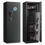 Cassaforte di grande capacità: questa cassaforte può contenere da 8 a 10 fucili o carabine ed è dotata di una tasca per tre pistole, un vano per le munizioni e tre supporti regolabili. Permette di riporre armi da fuoco e accessori