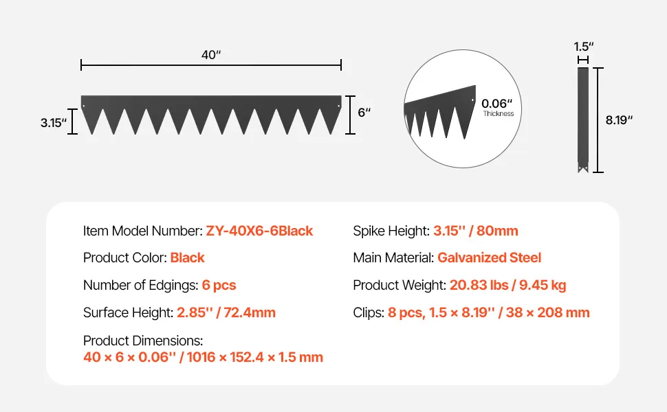 Cosa riceverai: il set include 6 bordature metalliche per giardini, 1 paio di guanti per l'installazione, 8 clip e 1 manuale di istruzioni. Il design con punta estesa semplifica l'inserimento dei pezzi nel terreno, riducendo lo sforzo di installazione