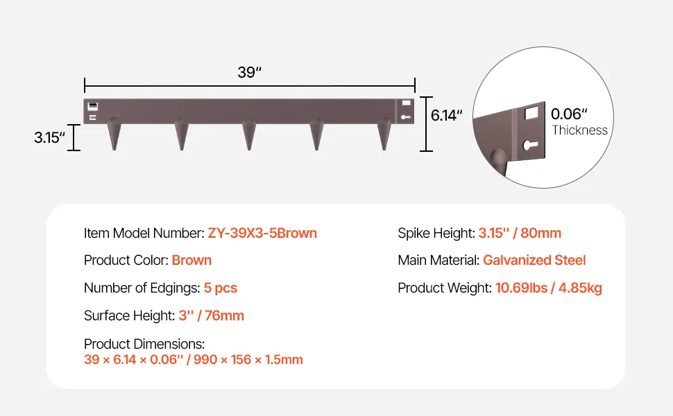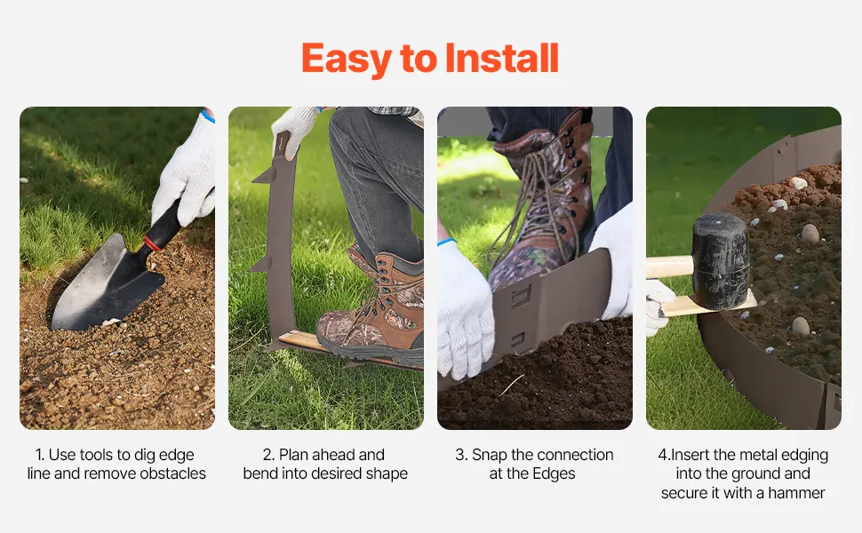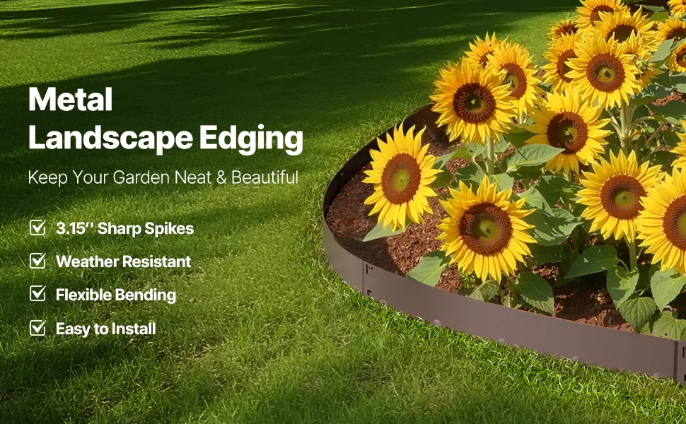 Cosa riceverai: Ogni set include 5 bordure per aiuole in metallo, 1 paio di guanti per l'installazione e 1 manuale di istruzioni. Il design con punte estese assicura una facile installazione aiutando la barriera a penetrare nel terreno con meno sforzo