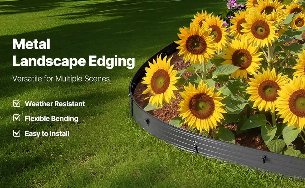 Durevolezza a lunga durata: realizzata in lega di alluminio di alta qualità con finitura antiruggine verniciata a polvere, questa bordatura in metallo per esterni resiste alle condizioni atmosferiche più avverse. Resiste allo sbiadimento, alle crepe e alla ruggine, rendendola ideale per l'uso all'aperto in tutte le condizioni atmosferiche.