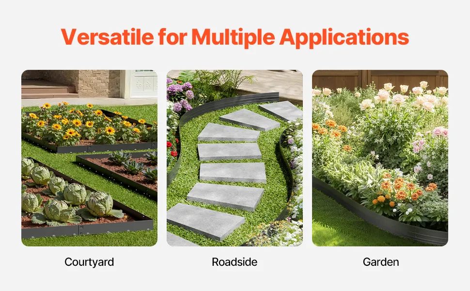 Versatile per molteplici utilizzi: che tu stia creando bordure per il giardino, definendo aiuole o separando spazi esterni, questa bordatura da giardino in metallo è una soluzione versatile per qualsiasi progetto di paesaggistica. Dona sia struttura che fascino estetico al tuo giardino.