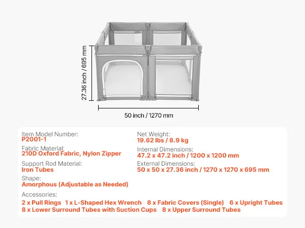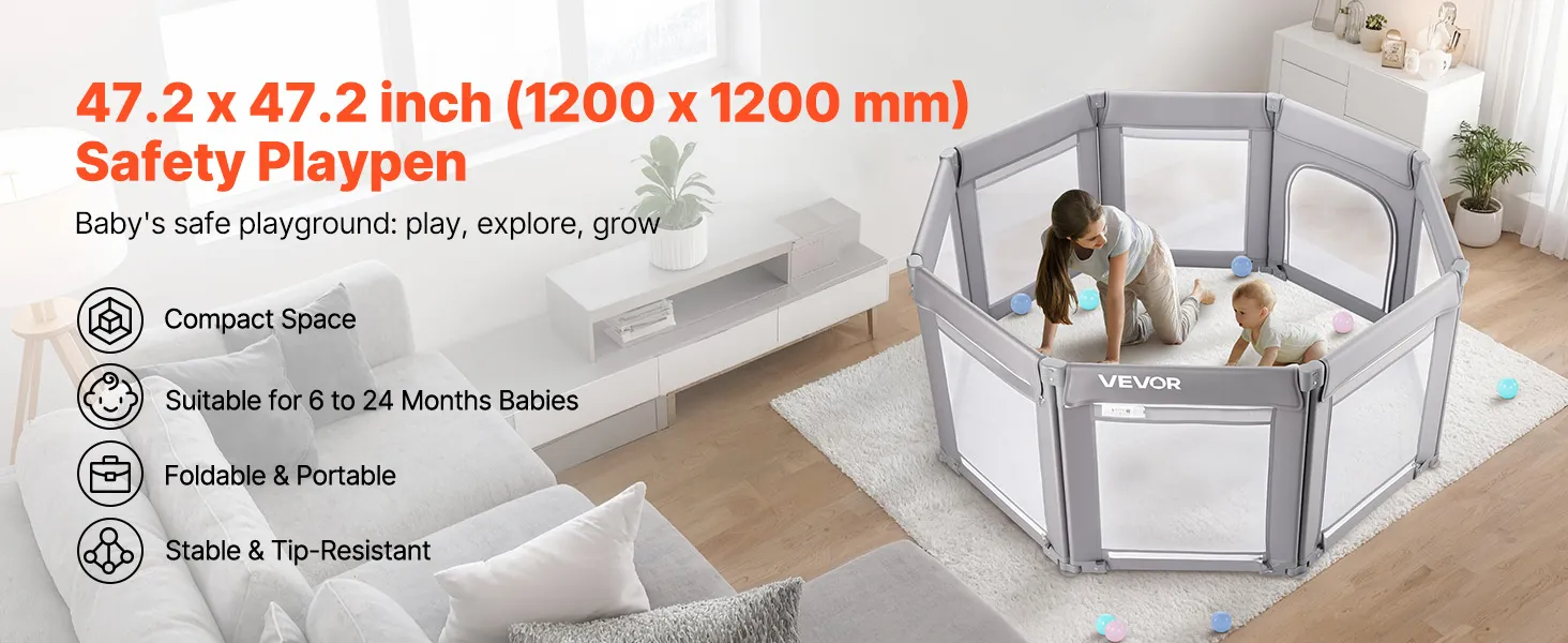Il box per bambini VEVOR da 1200 x 1200 mm (47,2 x 47,2 pollici) unisce sicurezza e divertimento, creando un'area spaziosa e sicura per il tuo piccolo. Grazie al montaggio rapido e al design pieghevole, è ideale per l'uso interno ed esterno.