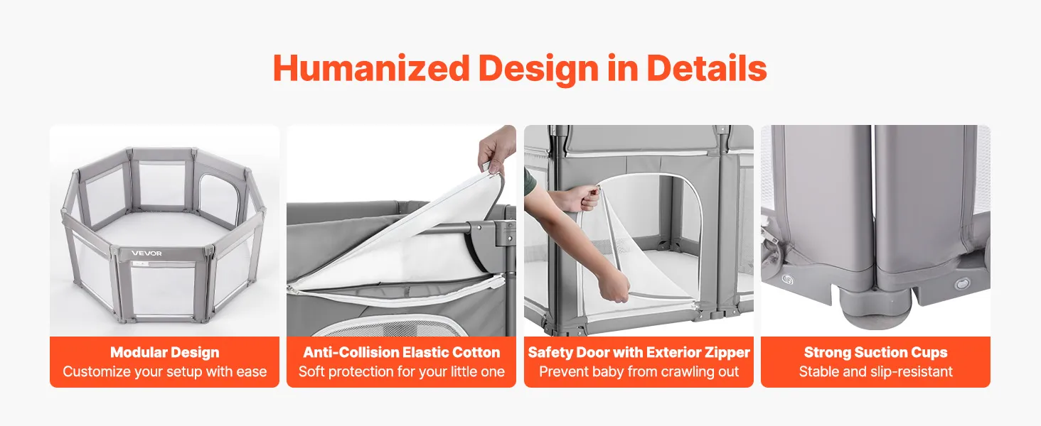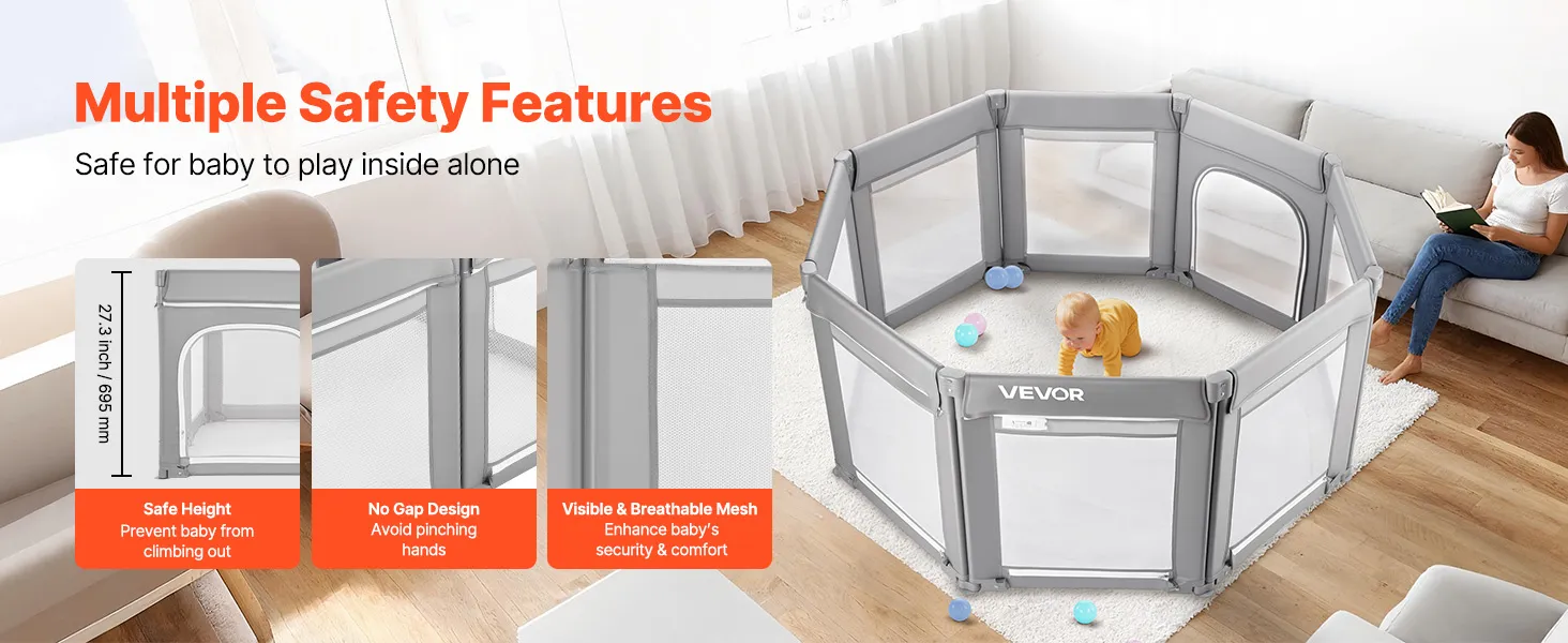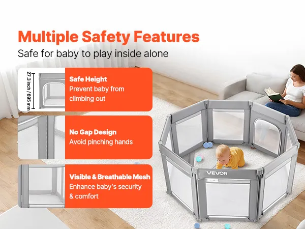Lascia che il tuo piccolo giochi in sicurezza mentre tu ti godi la tranquillità. Questo recinto per bambini è dotato di un'altezza scientificamente progettata per impedire al bambino di arrampicarsi fuori, una struttura senza fessure per evitare schiacciamenti alle dita.
