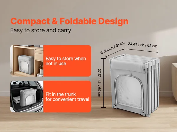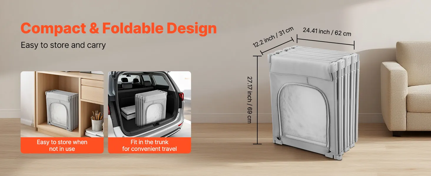 Il design pieghevole semplifica lo stoccaggio: basta ripiegarlo quando non lo si utilizza. Abbastanza compatto da stare nel bagagliaio dell'auto, questo recinto per bambini piccoli è utile per i viaggi all'aperto, la spiaggia, il parco o le visite in famiglia.