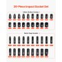 VEVOR Set di Bussole a Impatto 39 Pezzi, Bussole a Impatto a 6 Punte per Tagli Profondi e Superficiali, Metriche da 9 a 30 mm, Acciaio Cr-V per Impieghi Gravosi con Doppia Marcatura delle Dimensioni