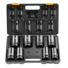 VEVOR Axle Nut Impact Socket Set 12.7 mm Drive, Deep 6 and 12 Point Socket Set, Metric, 14-Piece, CR-V Socket Set with Storage Case, Car Repair Black