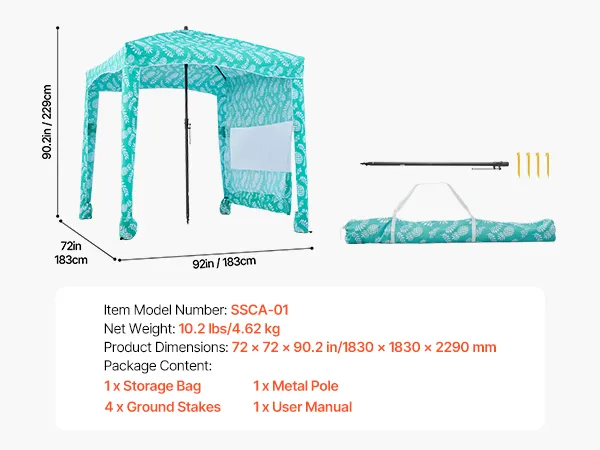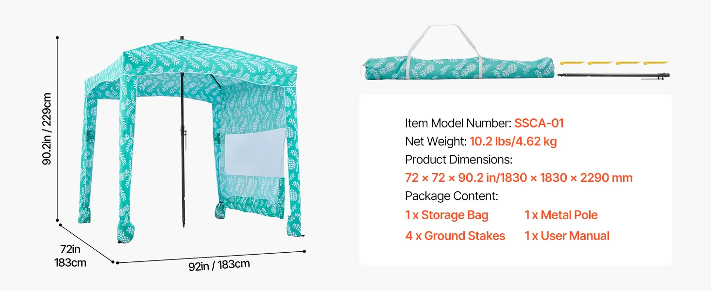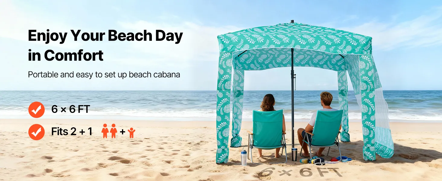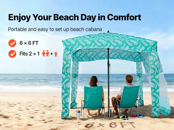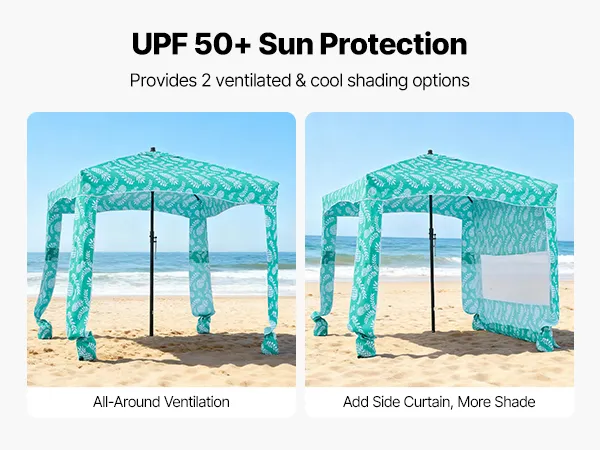 Cabana da spiaggia 1,8 x 1,8 m: spaziosa cabana da spiaggia con tenda laterale può ospitare comodamente due persone, sedie e attrezzatura. Progettata con tasche portaoggetti, mantiene telefoni, occhiali da sole e crema solare a portata di mano