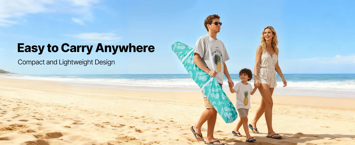 Resistenza al vento: dotata di una robusta struttura in fibra di vetro, un palo principale avvitabile, sacchi di sabbia e picchetti per il fissaggio a terra, questa grande cabina da spiaggia rimane saldamente ancorata alla sabbia