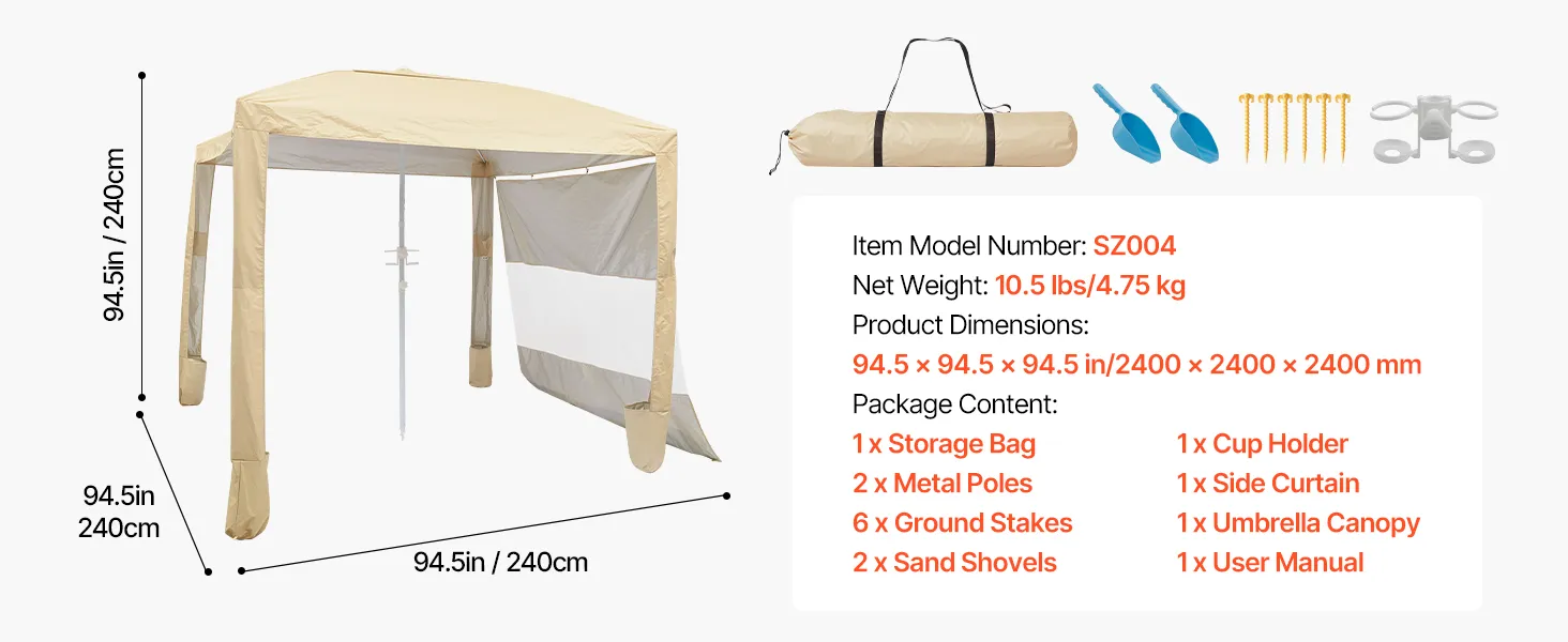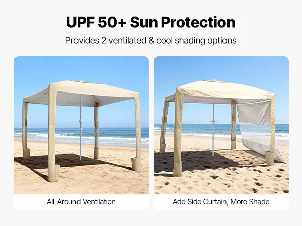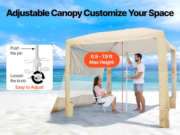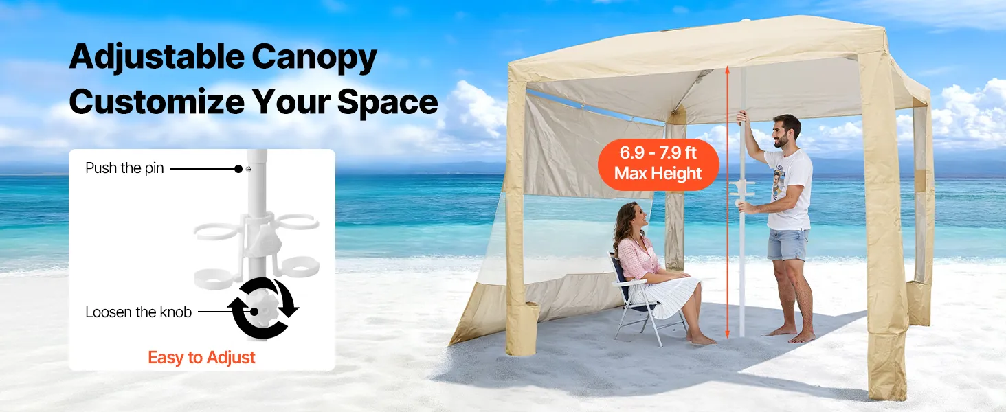 Altezza regolabile: la cabina da spiaggia è dotata di un palo di collegamento regolabile migliorato, consente un intervallo di altezza compreso tra 2,1 e 2,4 m. Ciò offre più spazio per la testa, così puoi stare in piedi comodamente senza piegarti
