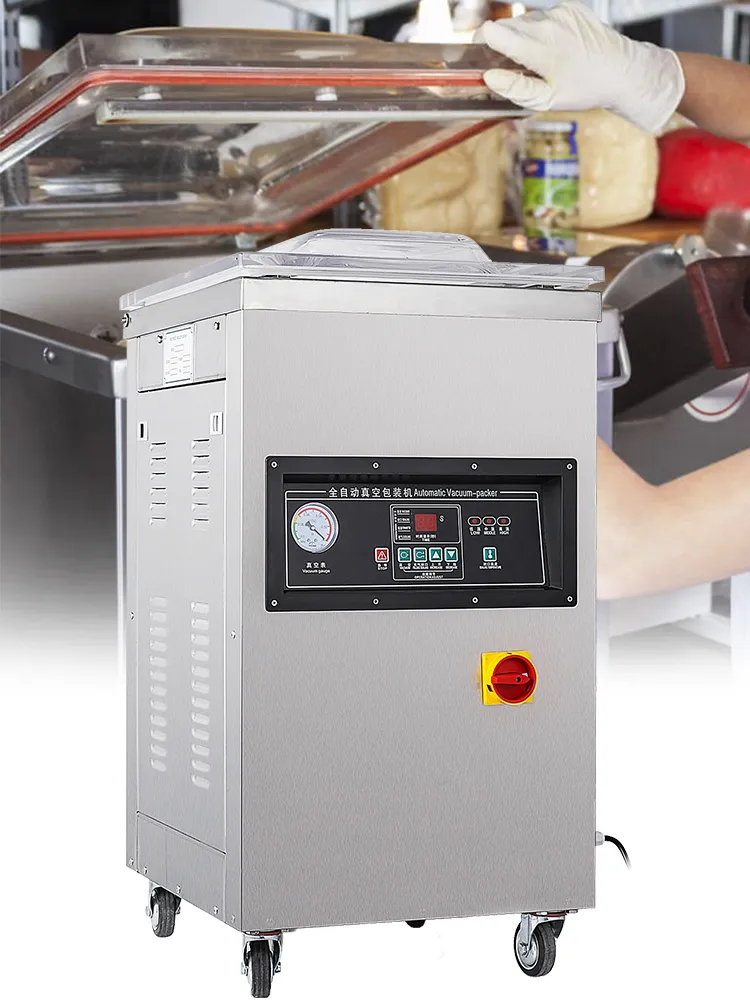 Ti offriamo questa MACCHINA PER CONFEZIONAMENTO SOTTOVUOTO A CAMERA SINGOLA, utilizzando come materiale da imballaggio il film composito di plastica o il film composito di fogli di plastica, è adatto per alimenti, medicine, prodotti acquatici, prodotti nativi, materie prime chimiche, componenti elettronici e altri oggetti (solido, liquido o in polvere). L'altezza della camera di tenuta è di 200 mm, molto più profonda di alcune altre confezionatrici sottovuoto, consentendo d'imballare articoli di grandi dimensioni.