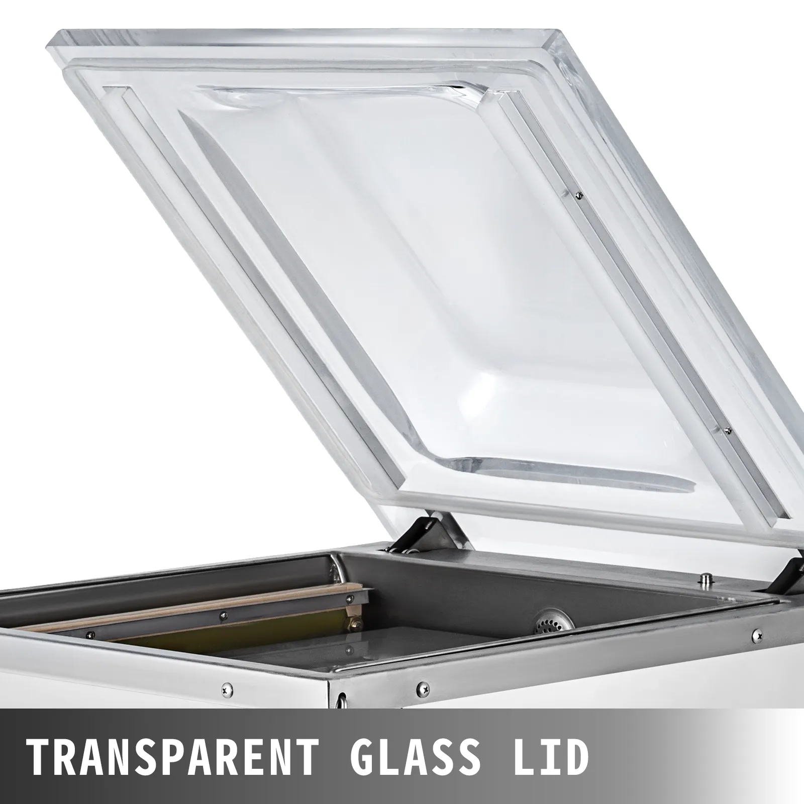 Coperchio in vetro organico trasparente con fibbia di sicurezza per fissare il coperchio in caso di vuoto e sigillatura. Gli utenti possono osservare l'intero processo attraverso il coperchio.