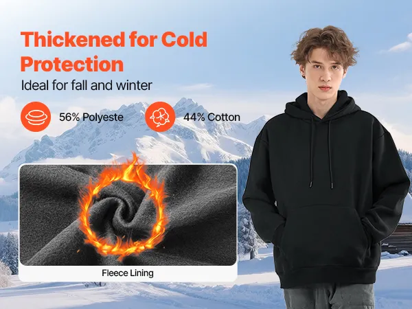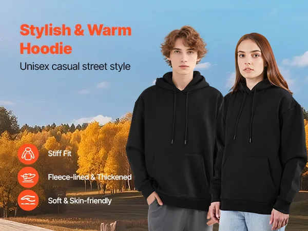 VEVOR Felpa con Cappuccio da Uomo, in Pile, a Maniche Lunghe, Calda e Delicata Sulla Pelle, Pratica e Alla Moda, Felpa con Cappuccio con Ampia Tasca per Autunno e Inverno, Nero Taglia XXL