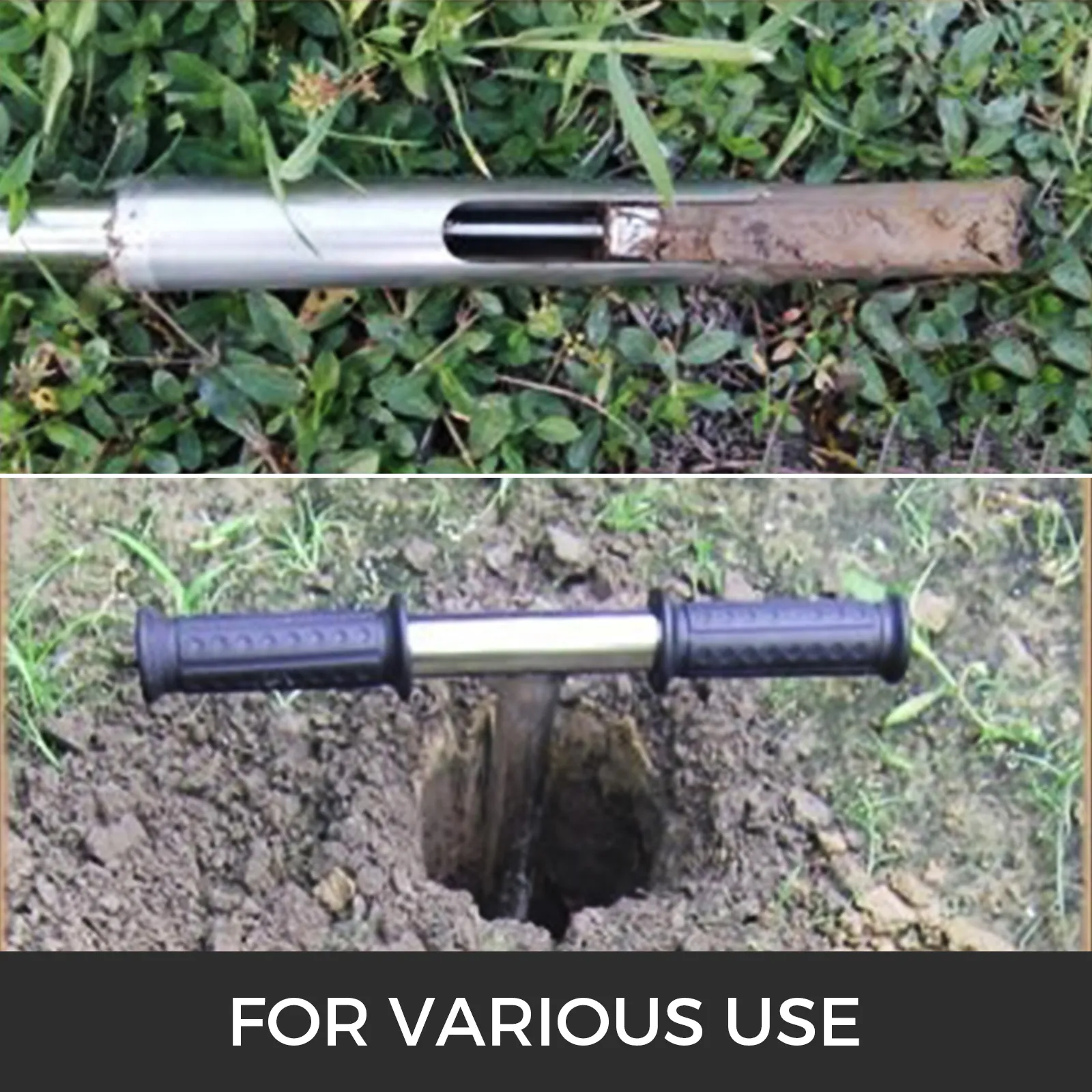 • Campionatore a Forma di T: Dotato di impugnatura in gomma tipo T, design bulldozing e pedale laterale, è perfetto per un'ispezione rapida delle caratteristiche del terreno.