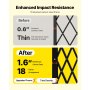 Our folding security gate is made of durable channel steel with a black powder coating for extended use. It features a lock for enhanced security and comes with an installation kit, making it ideal for busy hallways or entrances in commercial settings.