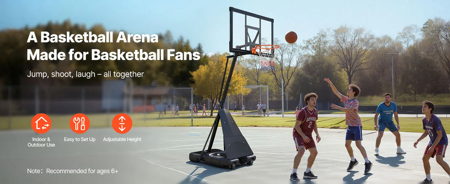 Questo canestro da basket da esterno include tutti gli attrezzi per il montaggio e ruote girevoli con doppi freni per un movimento fluido a 360°. Posizionalo in qualsiasi stanza o area esterna e bloccalo saldamente. Crea un'area di allenamento professionale per la tua casa.