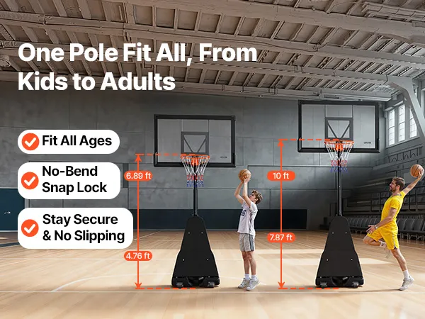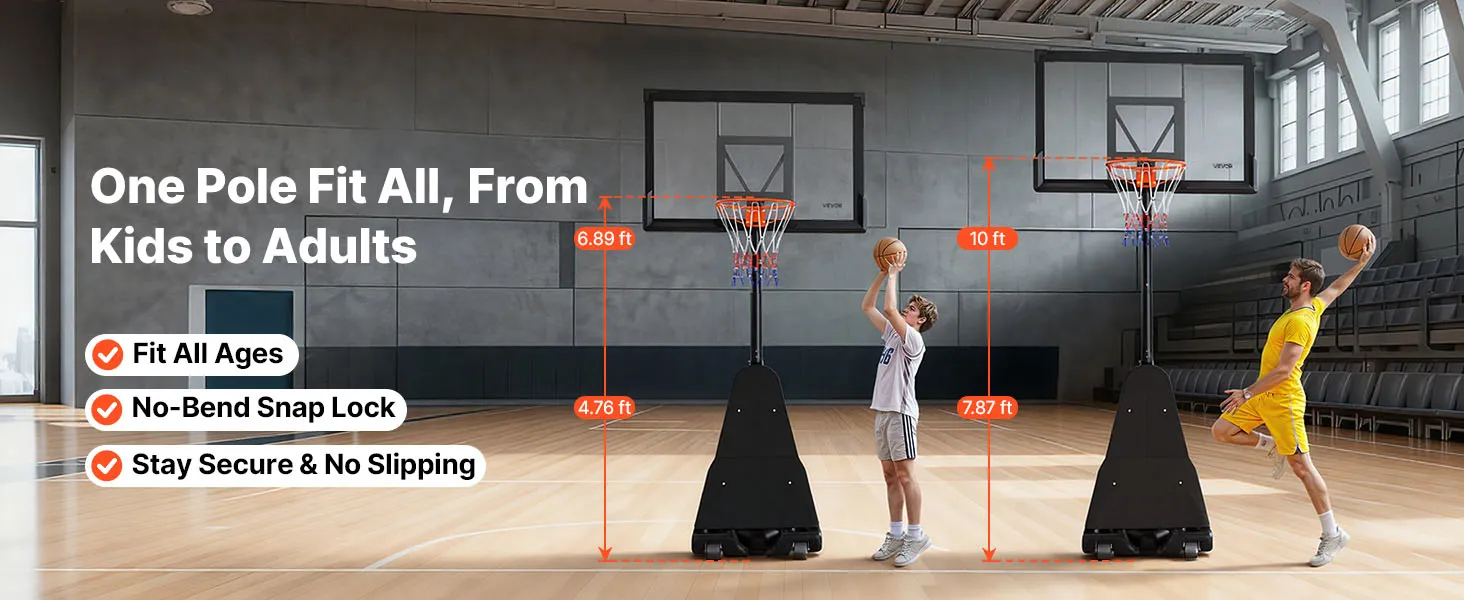 Con un'altezza regolabile di 3,05 m, il sistema di canestro da basket è adatto ai livelli di abilità e a tutte le fasce d'età. Regola facilmente il canestro per i giovani principianti o per gli adulti in cerca di sfide più impegnative, trasformando qualsiasi allenamento o partita amichevole.