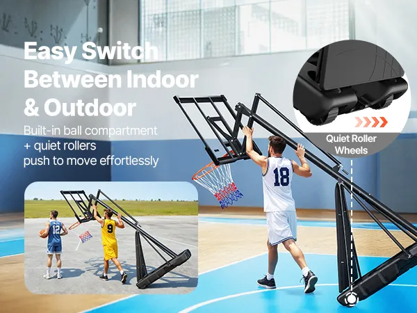 Movimento del canestro senza sforzo: questo sistema di canestro da basket è dotato di doppie ruote frenanti per una manovrabilità a 360°. Spostalo senza sforzo dal cortile al garage o alla palestra, bloccalo per una stabilità stabile