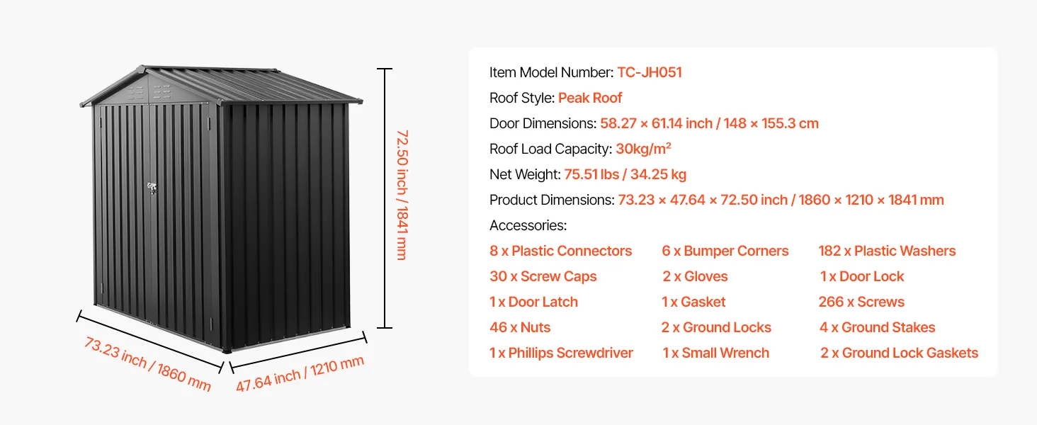 Ampio spazio di stoccaggio: il nostro capanno da giardino in metallo da 1860 x 1210 x 1841 mm offre ampio spazio per tosaerba, biciclette, attrezzi da giardinaggio e molto altro. Può essere utilizzato anche come pollaio o cuccia temporanea