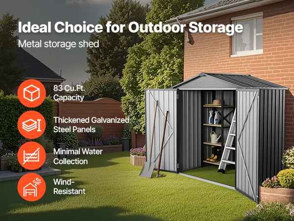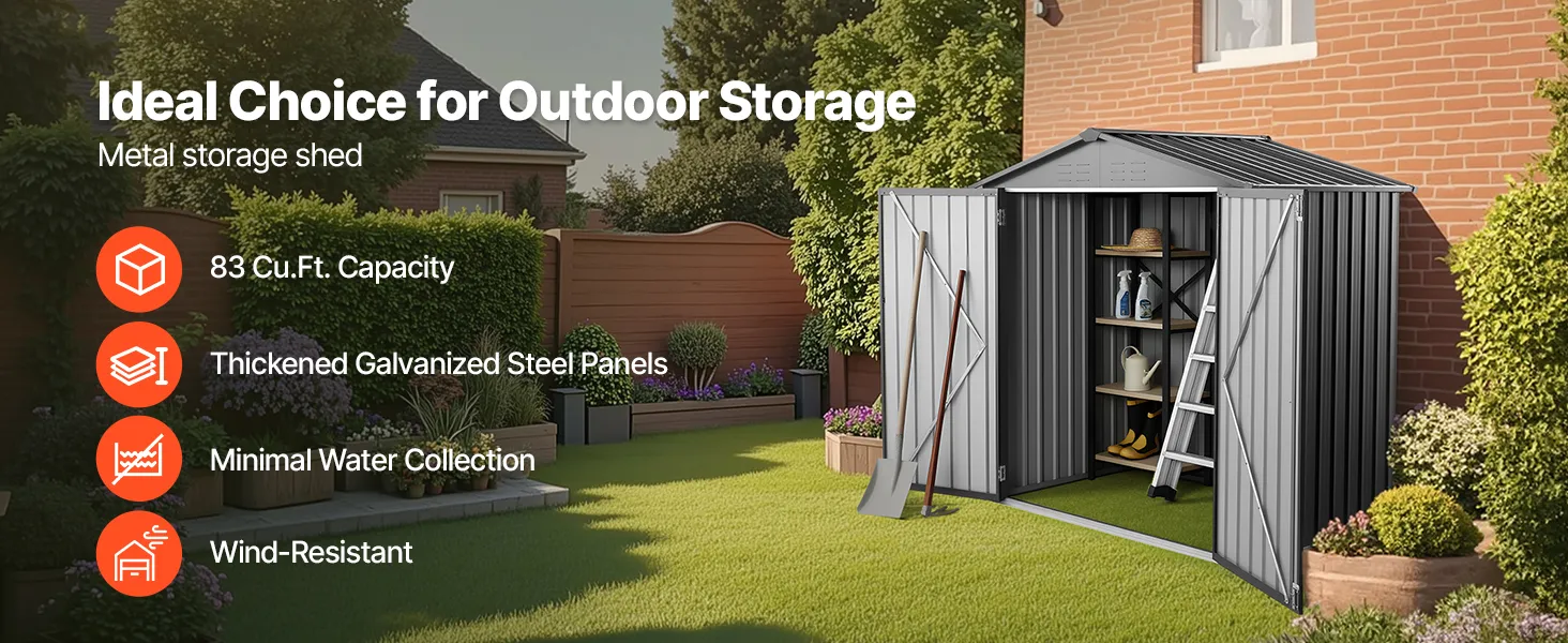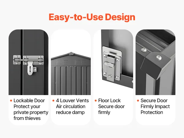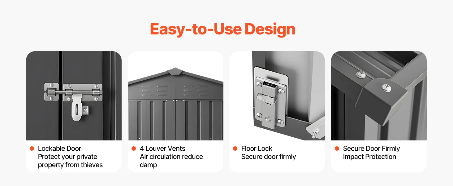 Per uno stoccaggio sicuro e pratico, questa casetta da giardino in metallo e unità di stoccaggio per esterni è dotata di una porta con serratura per proteggere i tuoi oggetti. Le aperture di ventilazione impediscono l'accumulo di acqua.