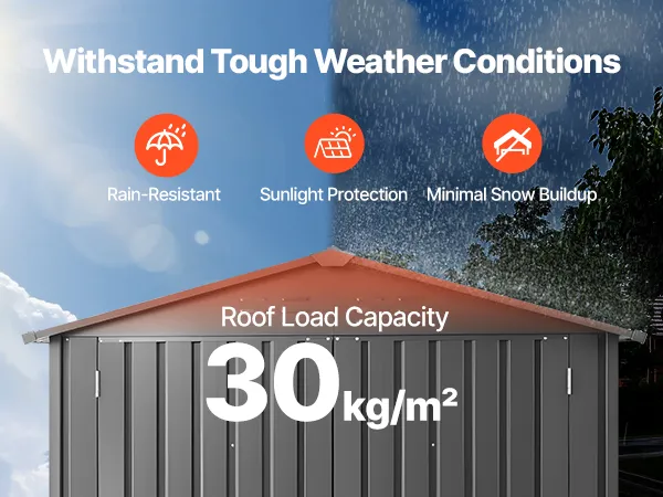 La nostra casetta da giardino è realizzata in metallo di alta qualità, che la rende resistente. Il suo tetto a punta impedisce l'accumulo di neve e acqua, supportando fino a 30 kg/m². Rimane stabile e resistente alle deformazioni.