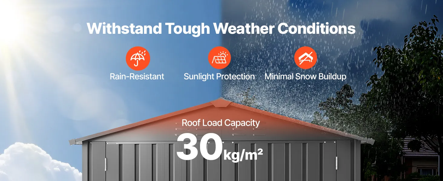 Resistente e robusto: realizzato in acciaio zincato spesso e pannelli verniciati, questo capannone in metallo per esterni è costruito per durare. La sua elevata resistenza lo protegge dalla corrosione, dalla pioggia e dai dannosi raggi solari