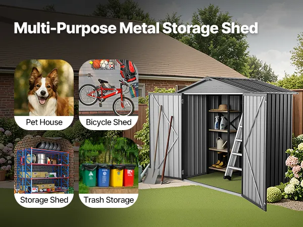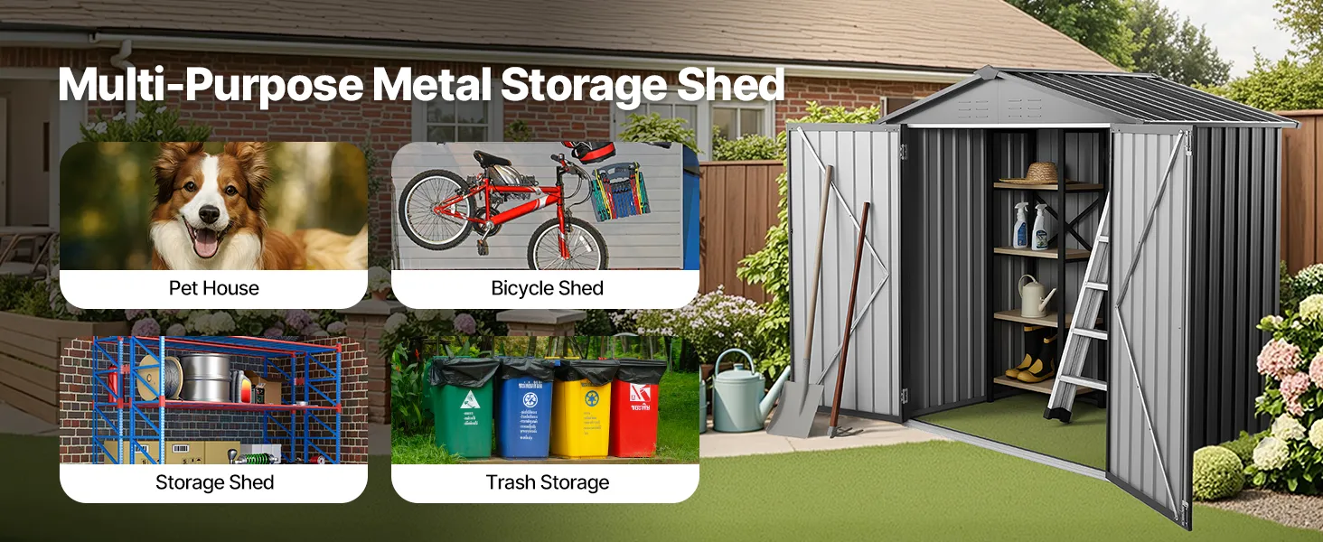 Ideale per molteplici usi, questo capannone può essere utilizzato come cuccia per animali, deposito biciclette, capanno da giardino o deposito rifiuti. Soddisfa perfettamente le diverse esigenze di stoccaggio all'aperto in giardino, garage o cortil.