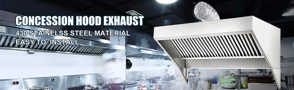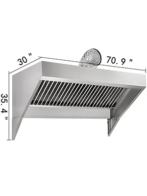 Le cappe di ventilazione sono una parte cruciale della tua cucina commerciale. Con la nostra cappa aspirante, puoi catturare grasso e fumo dalla cottura, mantenere la cucina fresca. Realizzato in acciaio inossidabile 430 con una struttura robusta e un disegno moderno, un aggiornamento perfetto per la tua cucina. Adotta il filtro del cappuccio deflettore rimovibile e la scanalatura del grasso per una facile pulizia. Ampiamente usato per camper, rimorchi in concessione e applicazioni per camion alimentari, ecc.