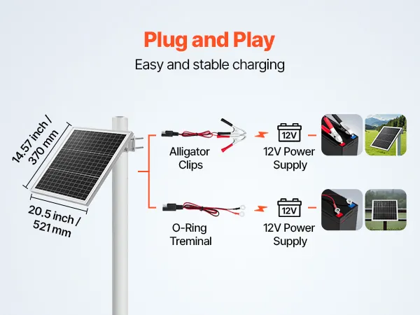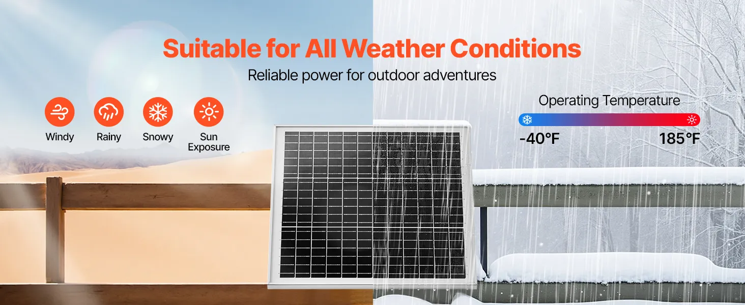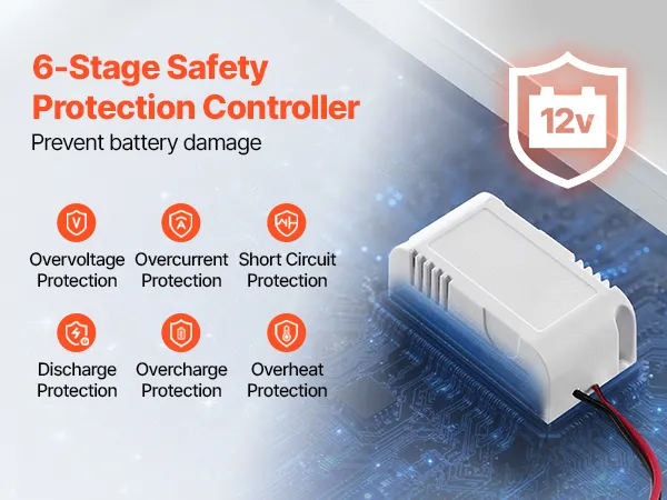 Regolatore di carica intelligente: Il regolatore integrato offre molteplici protezioni contro sovratensione, sovracorrente, cortocircuito, scarica eccessiva, sovraccarico e surriscaldamento. Ottimizza l'efficienza di carica proteggendo la batteria e l'impianto solare con il nostro kit caricabatterie a pannello solare