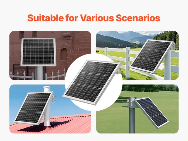 Questo kit di ricarica per pannelli solari è dotato di una staffa di montaggio su palo che consente la regolazione dell'angolazione da 0 a 60° ed è compatibile con pali con diametro da 40 a 80 mm. Facile installazione su cancelli, recinzioni, case o prati.