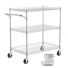 VEVOR Carrello da Cucina, 3 Livelli Carrello da Laboratorio con Capacità di 300 kg, Carrello di Servizio Telaio Cromato, Carrello Portaoggetti, Carrello di Trasporto 6 Ganci, per Uso Interno Esterno