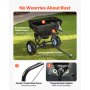 Durable Construction: Featuring a powder-coated steel frame and aluminum gears for UV corrosion and impact resistance, paired with 13-inch pneumatic tires, the lawn spreader is suitable for grass, gravel, and snow-covered terrains.