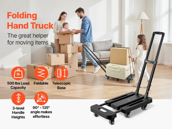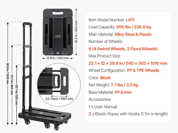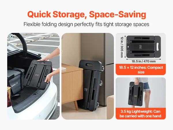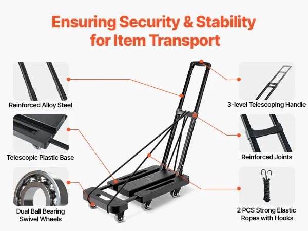 Base espandibile: questo carrello a mano è dotato di una superficie di carico estensibile, ideale per oggetti di grandi dimensioni. Avrai più spazio per le tue merci, quindi non dovrai preoccuparti di scatole di grandi dimensioni